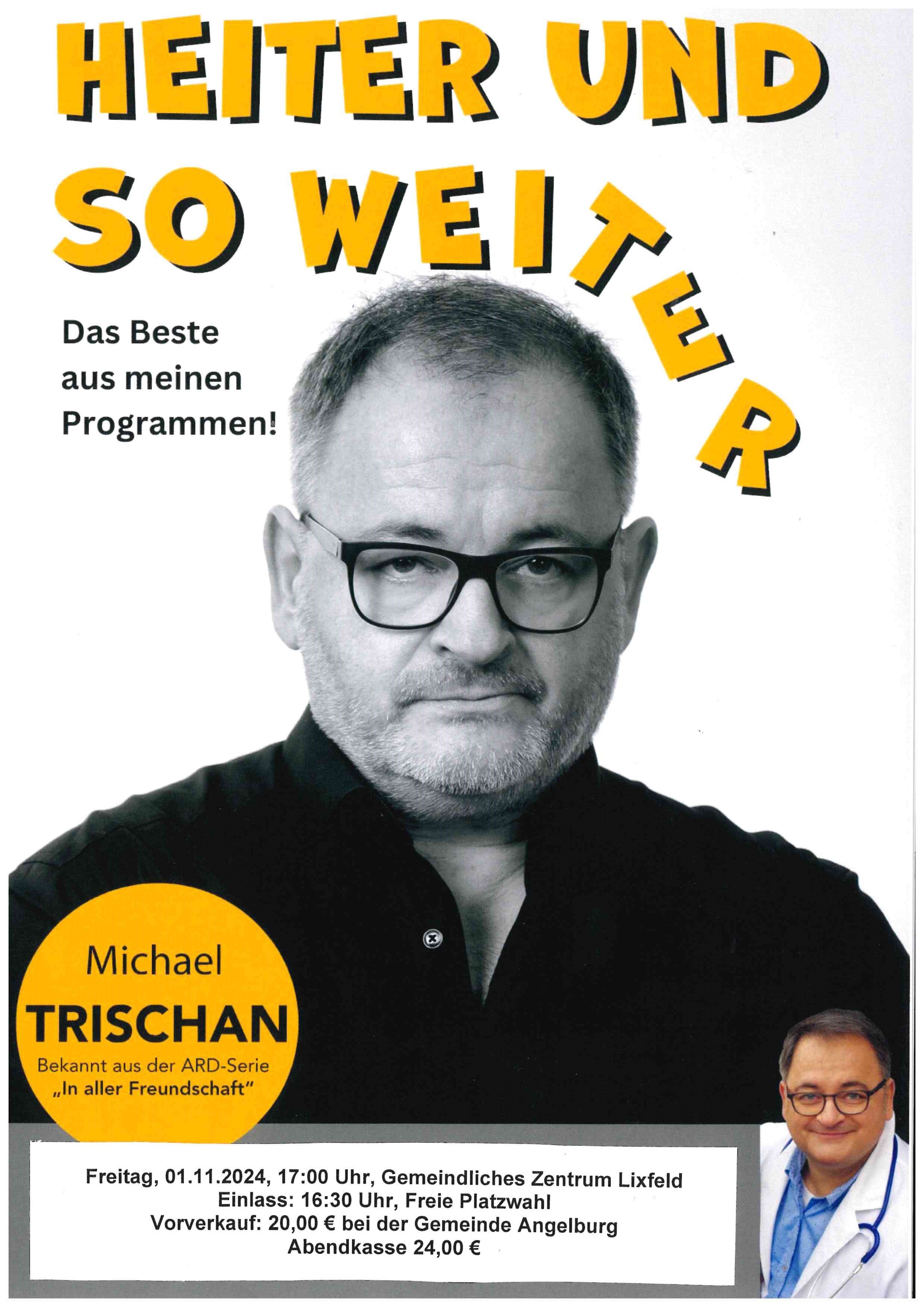 24.09.202401.11.2024 "Heiter und so weiter" - ein Abend mit Michael Trischan24.09.2024Jetzt Karten sichern!Mehr lesen