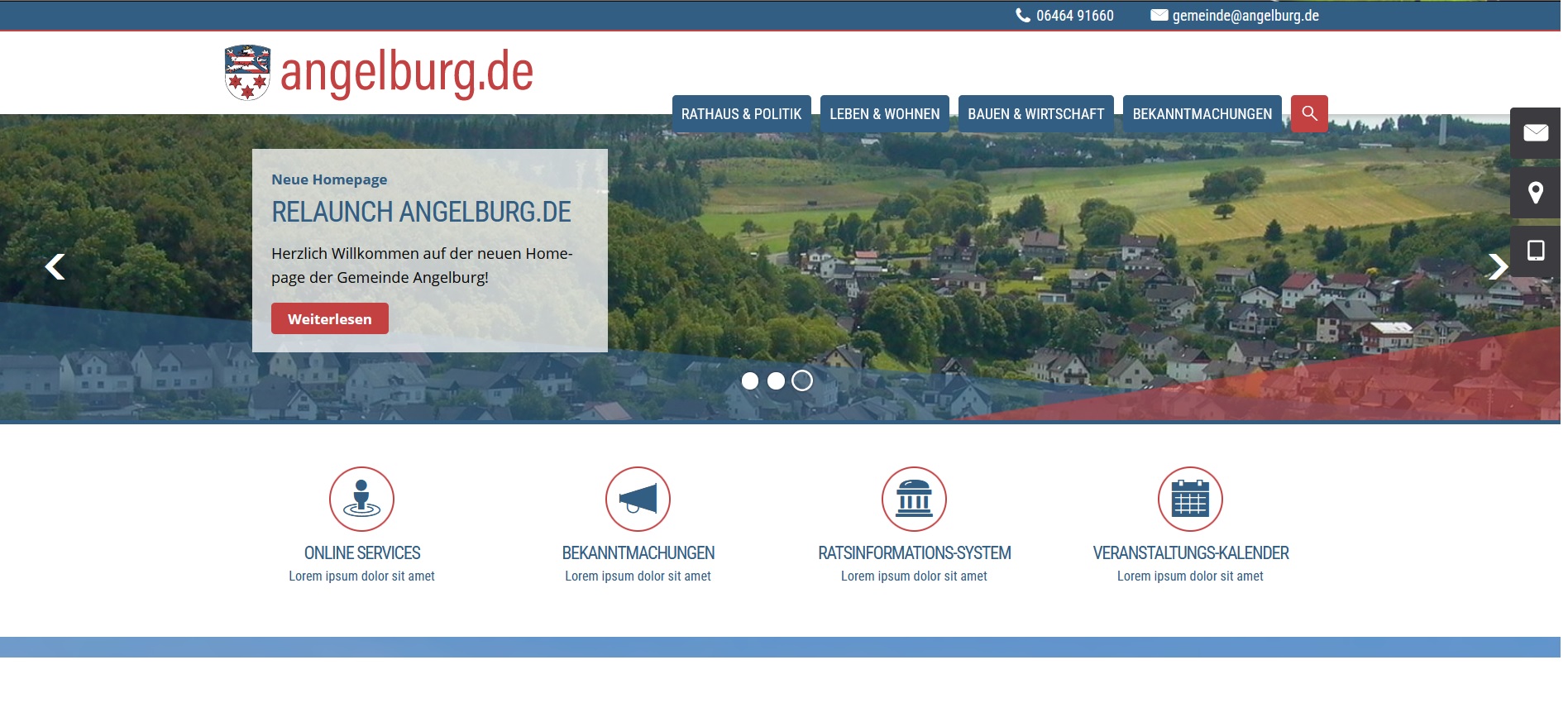 11.01.2024Gemeinde Angelburg angelburg.de im neuen Design!11.01.2024Unsere Homepage angelburg.de wurde umfangreich überarbeitet.Mehr lesen